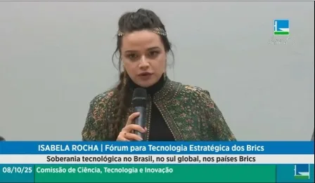 Em um discurso enfático sobre o papel da tecnologia na soberania nacional, a pesquisadora Isabela Rocha, presidente do Fórum para Tecnologia Estratégica dos Brics+, defendeu hoje (08) na Câmara dos Deputados, que o Brasil precisa romper com a dependência estrutural das grandes corporações estrangeiras que dominam o ambiente digital e investir na formação científica e em infraestrutura própria. Criticou a Medida Provisória do Redata (n° 1318, de 2025), que concede incentivos fiscais a empresas estrangeiras para instalação de data centers no Brasil. “Estamos abrindo mão da nossa energia e de nossas capacidades para beneficiar indústrias americanas. Isso não é soberania, é subordinação”, disparou.