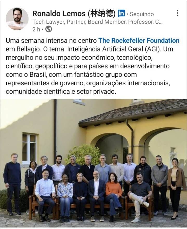 O que levaria um grupo de “representantes do governo, de organismos internacionais, comunidade científica e setor privado”, a participar durante uma semana, numa paradisíaca cidade italiana com vista para os Alpes, de uma “imersão” sobre os “impactos econômicos, tecnológicos, geopoliticos da Inteligência Artificial”? Patrocinado pela Rockefeller Foundation?