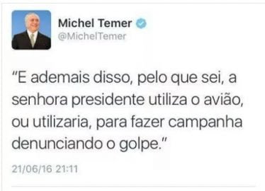 Por eu tratar este governo como “golpista”, chamo em minha defesa o senhor presidente interino da República, Michel Temer: