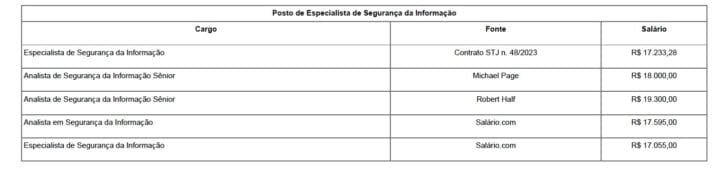 Vejam as estimativas de salário do tribunal para especialistas e analistas de Segurança da Informação: