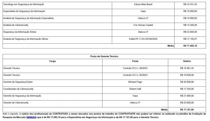 O próprio tribunal ao buscar informações do mercado constatou que um analista sênior de Segurança da Informação não sairia por menos de R$ 32 mil reais. No entanto aplica uma média salarial de R$ 17 mil para todas as categorias, que não condiz com os salários pagos no mercado, ainda mais em se tratando de CLT (Consolidação das Leis do Trabalho – que exige carteira assinada e o pagamento de todos os benefícios trabalhistas). Fora isso, a empresa terá de manter um quadro à disposição do STJ em regime híbrido, o que obriga os trabalhadores a darem expediente dentro e fora do tribunal. O mercado vem operando em regime de Home Office, o que barateia seus custos e encontra maior facilidade de contratações.