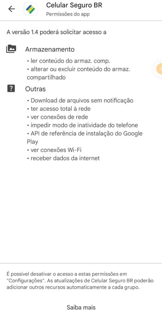 6 – Poderia também explicar qual o benefício de informar para uma pessoas que “é possível desativar” o aceso essas permissões, se depois explica que o app pode instalar “outros recursos automaticamente”?