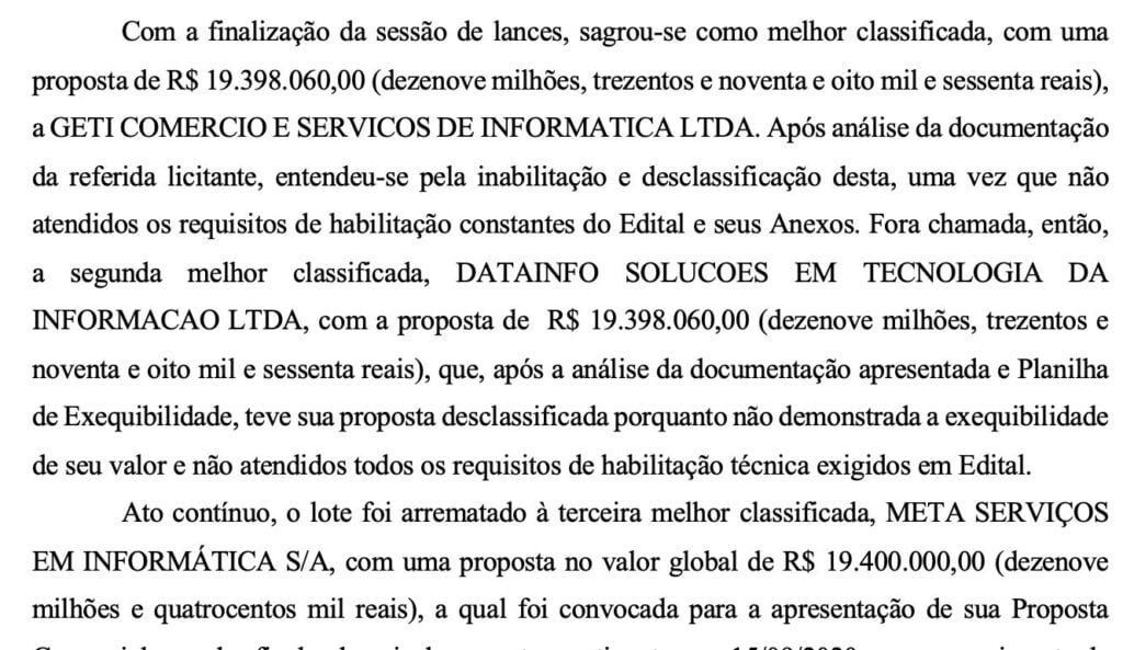 O Contrato de prestação de serviços sob demanda com o Grupo Meta foi assinado em 2020 pelo Ministério da Justiça por R$ 19 milhões. Sua vigência vai até 2025. O ministério buscou os serviços desta empresa por meio de um pregão eletrônico (nº19/2020). O Grupo Meta foi o terceiro colocado no certame, mas acabou sendo beneficiado após a desclassificação de duas concorrentes que chegaram a apresentar preços melhores na disputa comercial.