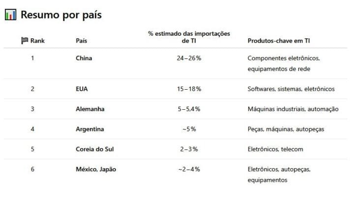 Já nas áreas de software e hardware uma eventual reciprocidade tarifária aplicada pelo Brasil contra os EUA poderá elevar o custo das aquisições de bens e serviços junto aos norte-americanos. Ainda é cedo, mas já há quem diga que, se persistir este cenário, não haverá outra saída que não seja adiar projetos e aguardar até que a crise acabe. Em relação ao software, os Estados Undos são os nossos maiores fornecedores, com cerca de 15% do mercado.