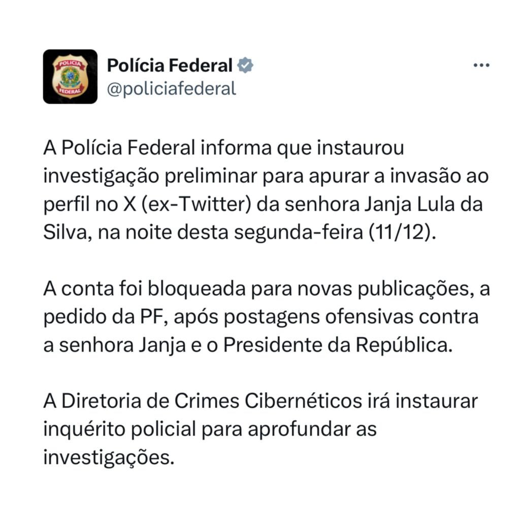 Por volta das 23h50 a Polícia Federal se manifestou, informando que está investigando o episódio.