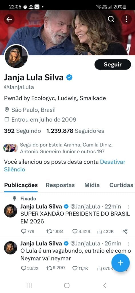 Com a notícia se espalhando na rede, o perfil de Janja Lula da Silva acabou tendo uma gigantesca movimentação de curiosos. Foi aí que aconteceu o surreal desta confusão. Dada a relevância momentânea, o perfil de Janja viralizou. Imediatamente os algoritmos da plataforma “X” detectaram a movimentação e tratarem de “faturar” com o episódio.