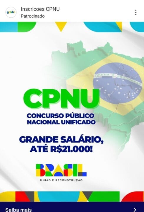 No mesmo dia que a Secretária de Governo Digital alerta para golpes aplicados na Internet com publicidade falsa do Concurso Público Nacional Unificado, o Instagram ganha dinheiro vendendo espaço publicitário para golpistas.
