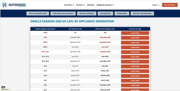 Já existe até uma relação dos modelos Exadatas que serão descontinuados pela Oracle (https://www.natrinsic.com/oracle/eos):