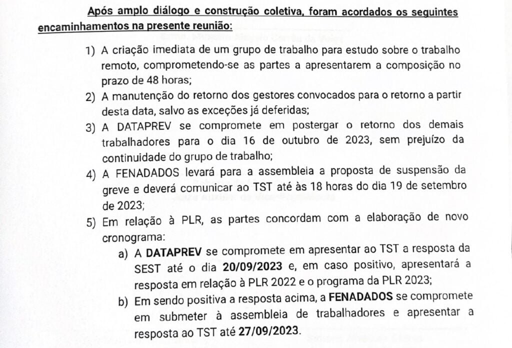 Sob a mediação do Tribunal Superior do Trabalho, a direção da Dataprev propôs hoje (18) a criação de um “Grupo de Trabalho”, que terá por objetivo fechar um acordo para a implantação de um novo modelo de trabalho remoto na estatal. A composição desse “GT” será anunciada em 48 horas.