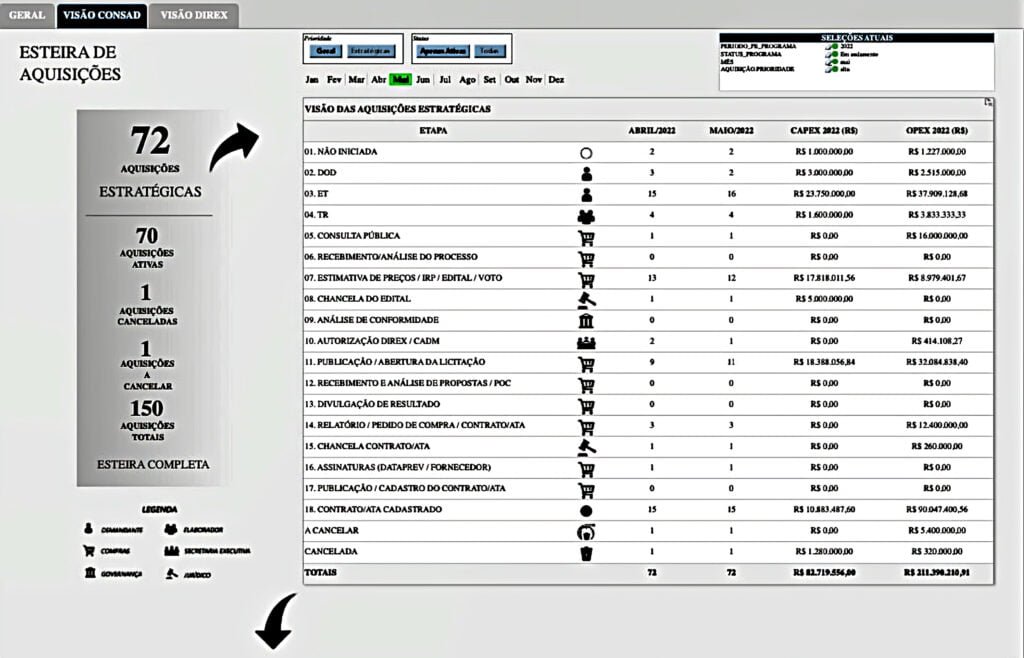 Essa série de reportagens começa com a direção da empresa elencando um total de 72 aquisições consideradas por ela como “estratégicas” para o funcionamento da Dataprev. A empresa discute no ano anterior o Plano de Aquisições e o conselho de administração aprova o plano de ação do ano subsequente na última reunião do ano corrente.