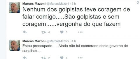 Mazoni ontem estava irritadíssimo no Twitter, pois não havia sido demitido oficialmente.