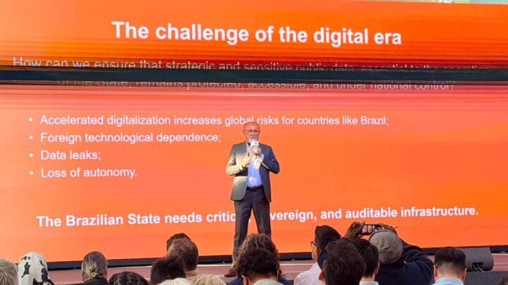 Durante sua participação, Mota destacou que o Brasil vive um momento singular para redefinir sua estratégia tecnológica. “Sempre dependemos de tecnologia externa. Hoje, temos a oportunidade, antes inexistente, de trabalhar com mais de uma grande alternativa tecnológica. Isso é saudável”, afirmou. Para o presidente do Serpro, a existência de múltiplos fornecedores globais fortalece a resiliência dos países e reduz riscos estratégicos, sobretudo em ambientes críticos de nuvem e IA.