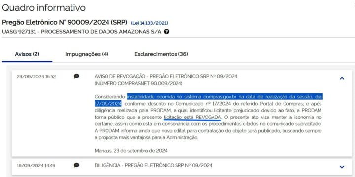 Os pregoeiros já não estão mais escondendo a informação ao se justificarem para as empresas que disputam as licitações eletrônicas. E não há uma previsão de quando os sistemas voltarão ao normal.