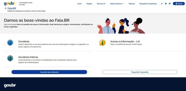 A página foi configurada para um cidadão se comunicar apenas com a Ouvidoria (Externa e Interna) no caso de querer registrar “um pedido de acesso à informação, fazer denúncias, elogios, reclamações, solicitações ou enviar sugestões”, conforme descrito os serviços pela própria plataforma.