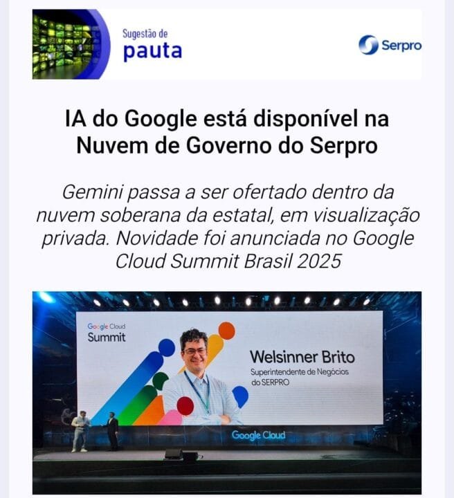 “Nuvem Soberana” do Serpro ganha IA da Google