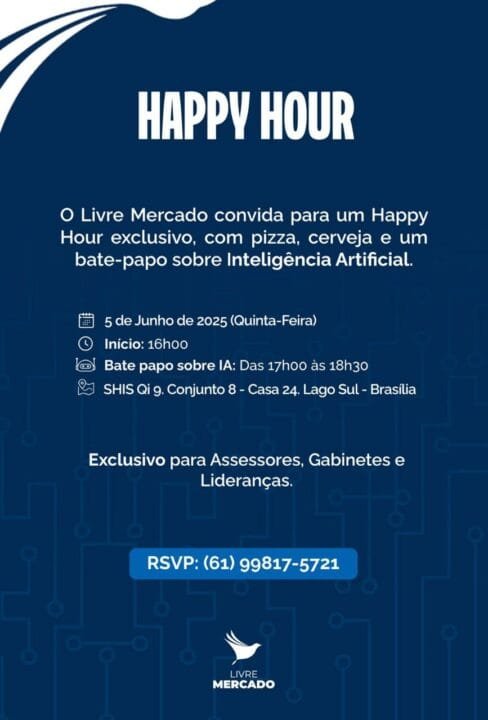 Logo mais às 16 horas deputados e senadores da “Frente Parlamentar Mista pelo Livre Mercado – FPLM” estarão se reunindo com representantes de empresas interessadas na regulamentação da Inteligência Artificial pelo Congresso Nacional. O “Happy Hour” será realizado na “Casa da Liberdade”, uma residência no Lago Sul – bairro nobre de Brasília – que foi transformada num Quartel General de mais uma “organização sem fins lucrativos” que opera no Legislativo cuidando dos interesses das big techs. Figuras ilustres estão sendo aguardadas no evento, como a presidente da Comissão Especial da Inteligência Artificial da Câmara, deputada Luisa Canziani (PSD-PR).