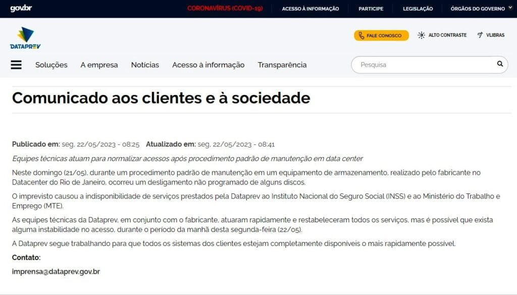 A Dataprev hoje cedo tratou de tentar explicar a situação em nota oficial. Procedimento que até o ano passado não era comum dentro da empresa. Dar satisfações ao contribuinte sobre os problemas que estariam ocorrendo e enfrentando não era uma regra. Apenas era uma exceção, se ocasionada por forte pressão da opinião publica.