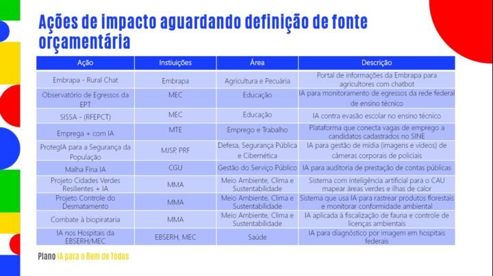 Por exemplo, o plano mostra que dos R$ 13,7 bilhões voltados para a Inovação em Inteligência Artificial, cerca de R$ 667 milhões serão destinados para a EMBRAPII, uma organização social vinculada à Confederção Nacional da Indústria, que tem contrato de gestão com o MCTI. Embora o plano descreva que esse dinheiro servirá para “apoio à cadeia de valor da IA”, com a estruturação 25 unidades da “Rede EMBRAPII de Competência em IA”, o texto não deixa claro esse objetivo.