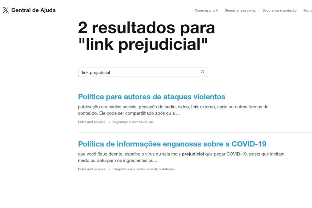 Para tentar compreender o motivo da Plataforma “X” decidir que um link do governo brasileiro pode ser considerado “prejudicial”, este blog resolveu pesquisar na Central de Ajuda alguma informação. Mas numa pesquisa sobre links maliciosos, a resposta não acrescenta nada ao fato do bloqueio da publicação.
