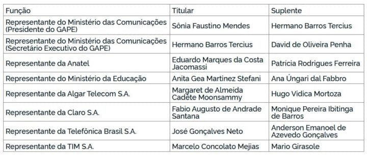 A principal mudança, anunciada na Portaria 440, publicada no Diário Oficial, foi a exclusão do conselheiro Vicente Aquino, da Anatel, como presidente do Gape – Grupo de Acompanhamento do Custeio a Projetos de Conectividade de Escolas. Em substituição, o ministro das Comunicações, Juscelino Filho, nomeou a atual secretária-executiva, Sonia Faustino.