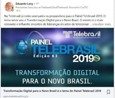 Posted in MercadoTransformação digital será o tema do evento deste ano do setor de Telecomunicações Luiz Queiroz 4 de abril de 2019 O anúncio foi feito pelo Telebrasil.Notícias relacionadas:BC seleciona 9 projetos para futura implantação do “Real Digital”Mambu e VeriTran firmam parceria estratégica para aplicações financeirasSamsung lidera os credores de tecnologia no rombo de R$ 40 bilhões das Lojas AmericanasRecessão para uns…